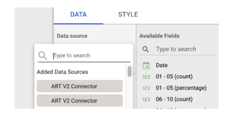 Once you have completed this section, you will be taken back to your report canvas. When adding a new chart to your report, you will be able to select which datasource that specific chart uses on the right sidebar under the ‘DATA’ section. Unfortunately, your data sources will have the same name (and there is no way to rename this). But they will be ordered in descending order, with the one added most recent being at the very top.